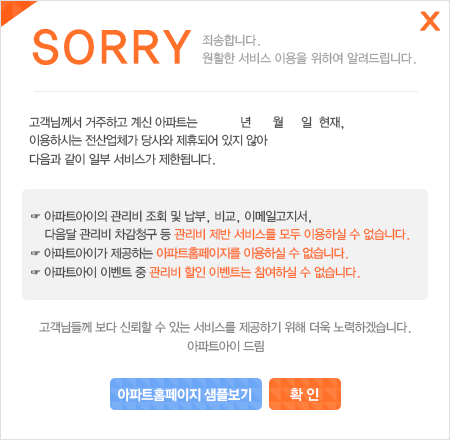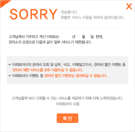 ȸ¿ø´ÔÀÇ ´ÜÁö °ü¸®»ç¹«¼Ò¿¡¼ ¾ÆÆÄÆ®¾ÆÀÌ ¹«·áÁ¦°ø ȨÆäÀÌÁö¸¦ ¿î¿µÇÏÁö ¾ÊÀ» °æ¿ì, ÀÌ¿ë ½Ã ¾î·Á¿òÀÌ Àְųª ÀÌ¿ë ÀÚü°¡ ºÒ°¡ÇÒ ¼öµµ ÀÖ½À´Ï´Ù.